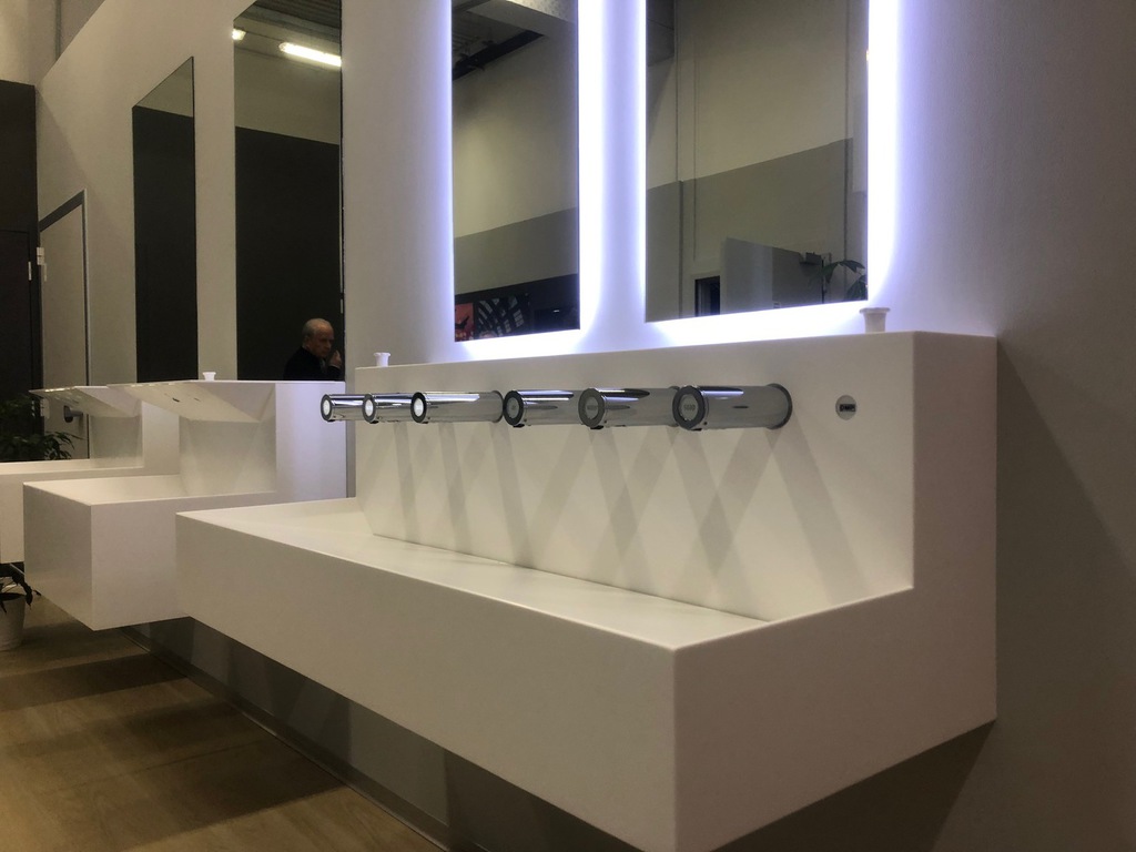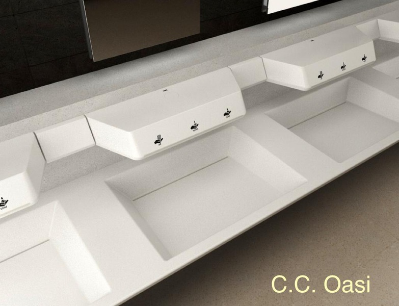 cette solution compléte existe en plusieurs versions , sur plage , sur vasque , sur crédence ..... , toujous composés et accompagné de materiaux anti-microbiens , et anti-bacteriens nos concepts garantissent des équipements propres et conformes aux exigences du grand public et PHMR , les hopitaux , ephad , gare ...